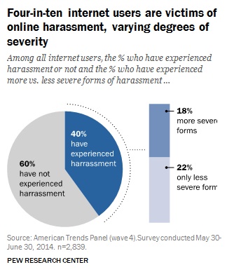 A new study from the Pew Internet Project confirms yet again that no particular demographic has a monopoly on online harassment and bullying, certainly not kids and teens. “Fully 73% of adult Internet users have seen someone being harassed in some way online and 40% have personally experienced it,” Pew reports – and, astoundingly, 70% of the youngest adults (18-24-year-olds)!